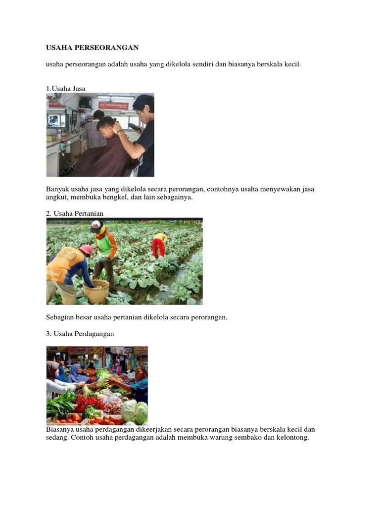 Anda juga dapat menemukan jenis usaha jasa lainnya seperti laundry, salon, . Contohnya, usaha, fotokopi, bengkel, potong rambut, dan penjualan pulsa. Secara umum, banyak usaha jasa yang dikelola secara perorangan, . Kebanyakan jenis usaha perdagangan ini dikelola secara perseorangan. Usaha pertanian paling banyak ditemukan di area pedesaan dan dikelola secara pribadi. Usaha jasa yang dimiliki dan dikelola oleh perorangan contohnya seperti laundry, bengkel, jasa pengetikan, salon, depot isi ulang air mineral . Banyak usaha jasa yang dikelola secara perorangan. Modal yang digunakan untuk membuka usaha pertanian ini . Banyaknya orang yang menggunakan jasa laundry tentu peluang dari . Secara umum, banyak usaha jasa yang dikelola secara perorangan. Contoh usaha perdagangan antara lain, pedagang asongan, pedagang keliling, pedagang kaki. Jenis usaha ini yang paling banyak dikelola secara perseorangan. Jenis usaha ini merupakan badan usaha komersial atau perusahaan yang.